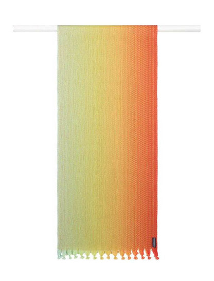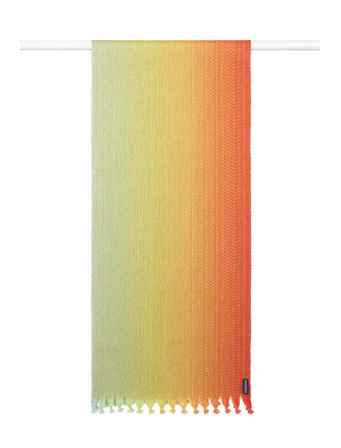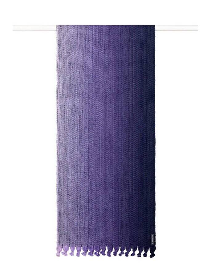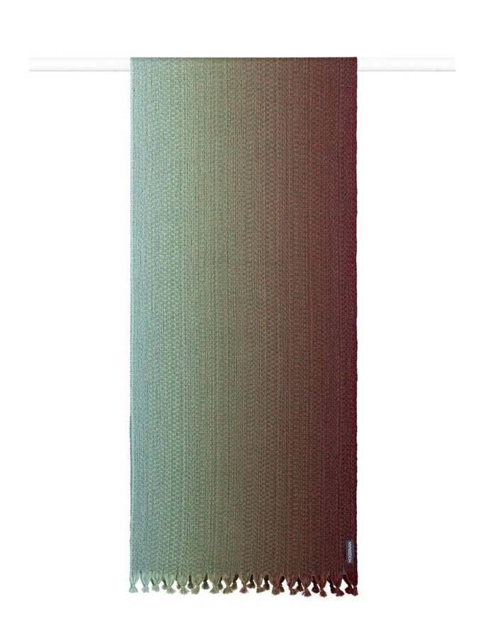 The colour of this scarf changes thread by thread over it’s full width. To achieve this unique effect, the warp is made from a shiny Merino Wool from Piedmont, Italy using a vertical hand-warping mill. The weft yarn is a slightly thicker Merino Wool, spun in Yorkshire, England. The fringes are knotted by hand.