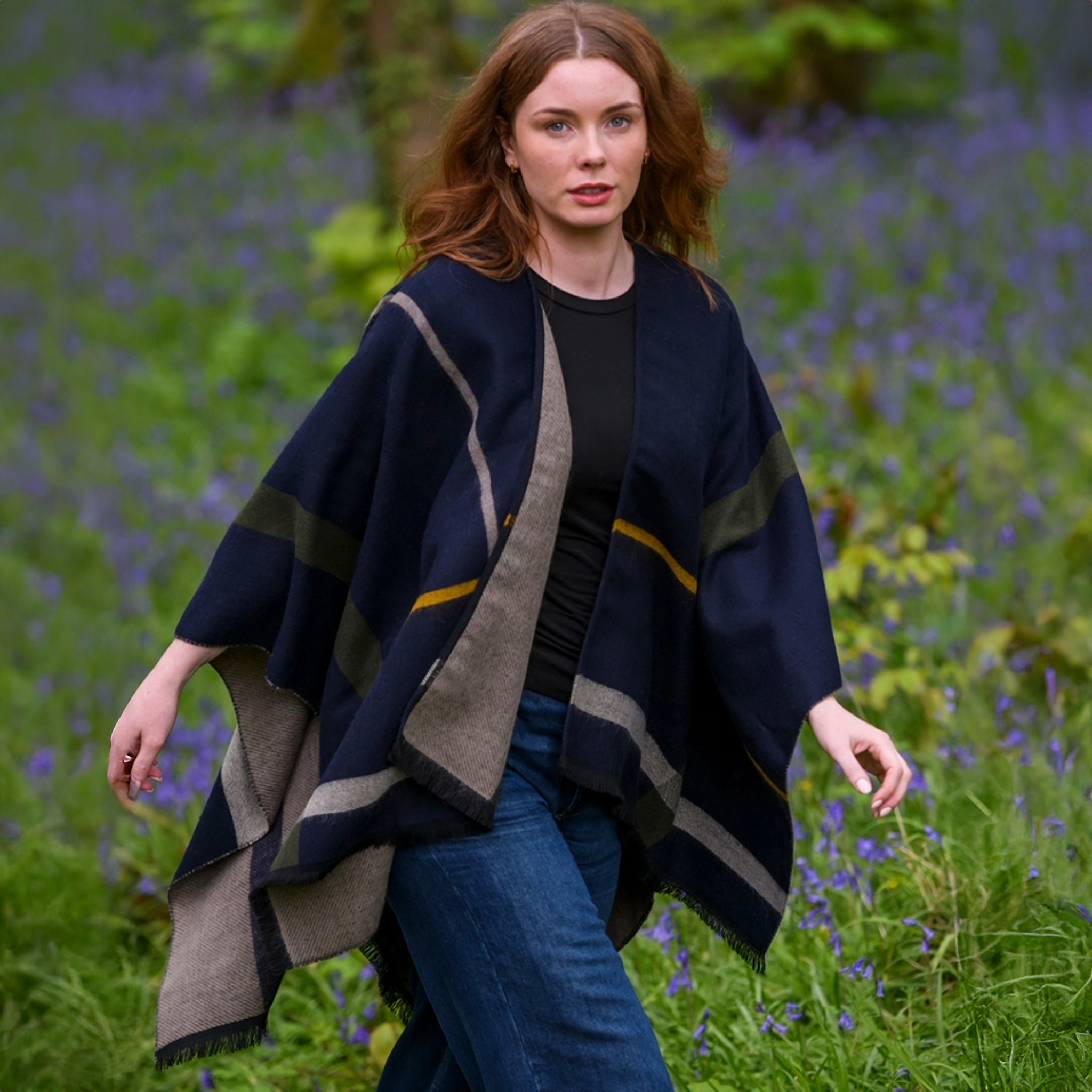A gorgeous reversible shawl that can also be worn as a wrap or a cape.