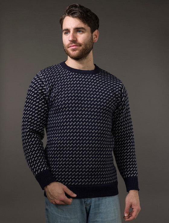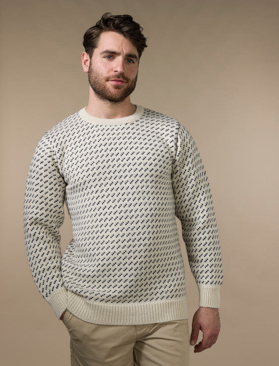 This Norwegian Style Sweater is made from 100% Pure New Wool and features the traditional Norwegian birds footprint pattern throughout.