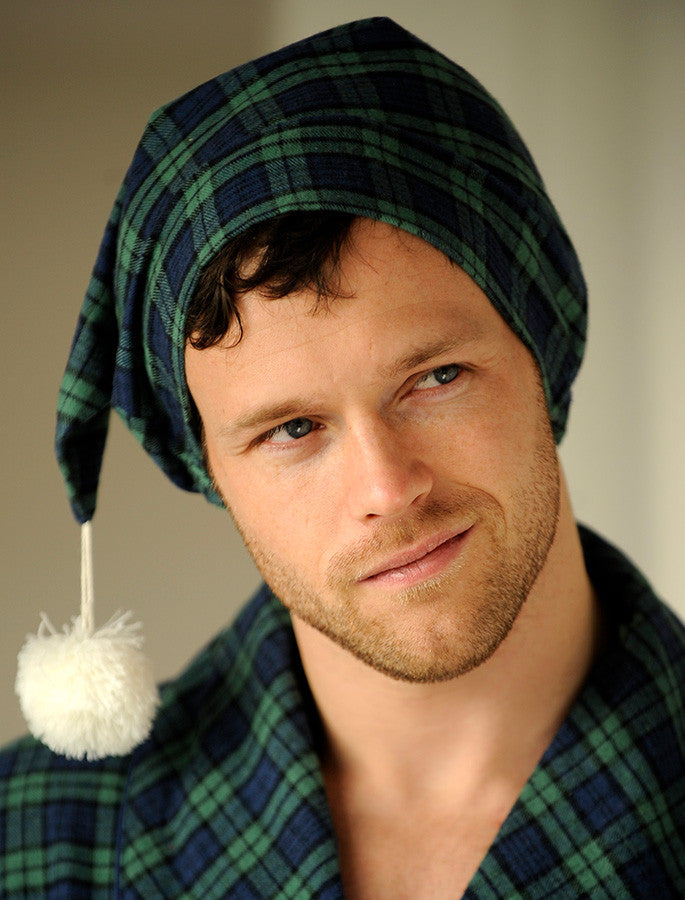 Men's Cotton Flannel Nightcap - Green Blackwatch Tartan