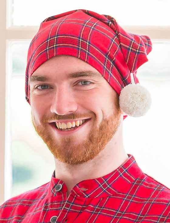 Men's Cotton Flannel Nightcap - Red Tartan
