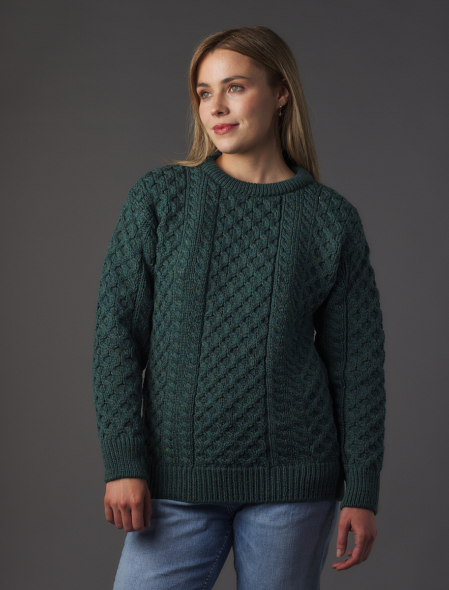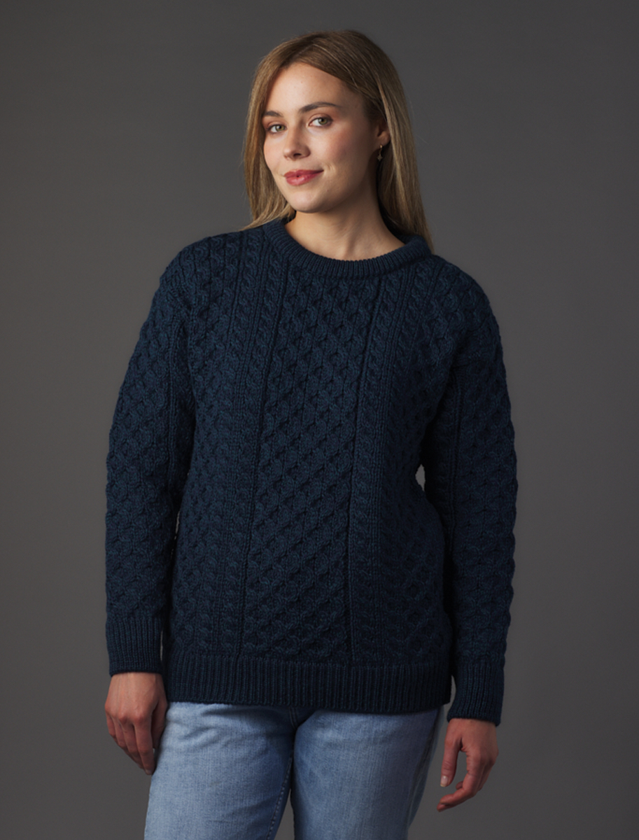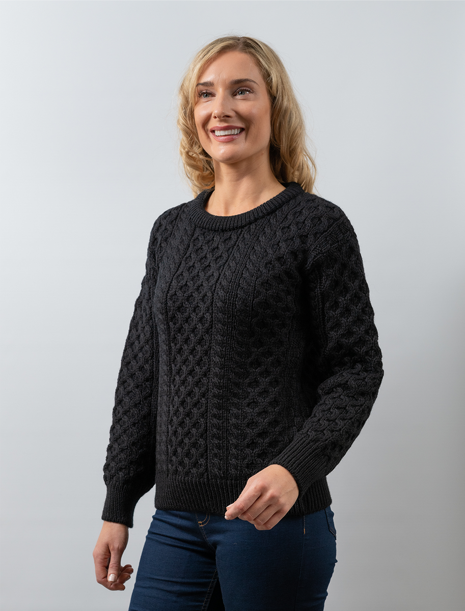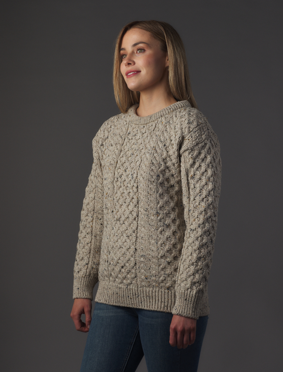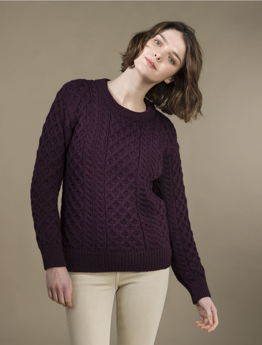 WOMEN'S HEAVYWEIGHT TRADITIONAL ARAN WOOL SWEATER