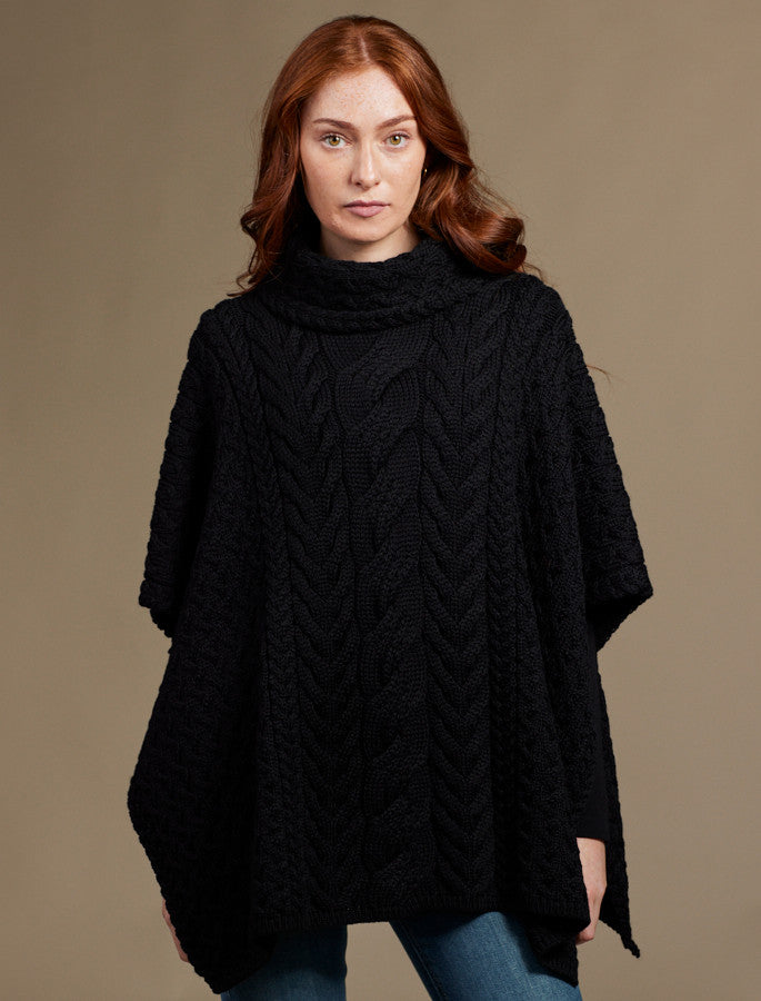 Super Soft Cowl Neck Poncho - Classic Aran